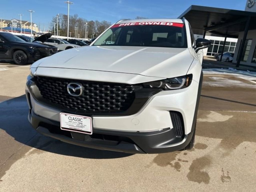 This 2025 Mazda CX-50 comes equipped with the following features Weather Package (Cargo Liner w/Seatback Protection), 12 Speakers, 4-Wheel Disc Brakes, ABS brakes, Air Conditioning, Alloy wheels, AM/FM radio: SiriusXM, AppLink/Apple CarPlay and Android Auto, Auto High-beam Headlights, Automatic temperature control, Brake assist, Bumpers: body-color, Delay-off headlights, Driver door bin, Driver vanity mirror, Dual front impact airbags, Dual front side impact airbags, Electronic Stability Control, Emergency communication system: MAZDA CONNECT, Exterior Parking Camera Rear, Front & Rear Splash Guards, Front anti-roll bar, Front Bucket Seats, Front Center Armrest, Front dual zone A/C, Front reading lights, Front wheel independent suspension, Fully automatic headlights, Half Leatherette Seat Trim, Heated door mirrors, Heated front seats, Heated Front Seats w/3 Level Adjustment, Illuminated entry, Knee airbag, Leather Shift Knob, Leather steering wheel, Low tire pressure warning, Occupant sensing airbag, Outside temperature display, Overhead airbag, Overhead console, Panic alarm, Passenger door bin, Passenger vanity mirror, Power door mirrors, Power driver seat, Power Liftgate, Power moonroof, Power steering, Power windows, Radio data system, Radio: AM/FM/HD Bose 12-Speaker Audio Sound System, Rain sensing wipers, Rear seat center armrest, Rear window defroster, Rear window wiper, Remote keyless entry, Speed control, Speed-sensing steering, Split folding rear seat, Spoiler, Steering wheel mounted audio controls, Tachometer, Telescoping steering wheel, Tilt steering wheel, Traction control, Trip computer, Turn signal indicator mirrors, Variably intermittent wipers, Wheels: 17 x 7J Aluminum Alloy Black Metallic Finish, and Wind Chill Pearl Paint Charge. Clean CARFAX. 2025 Mazda CX-50 2.5 S Premium Package AWD SKYACTIV® 2.5L 4-Cylinder DOHC 16V