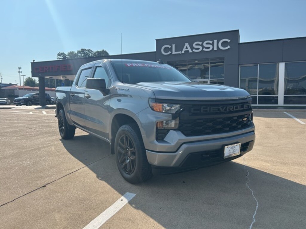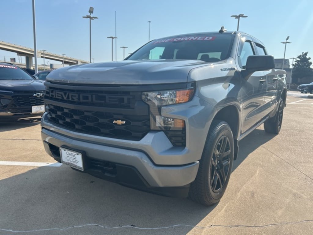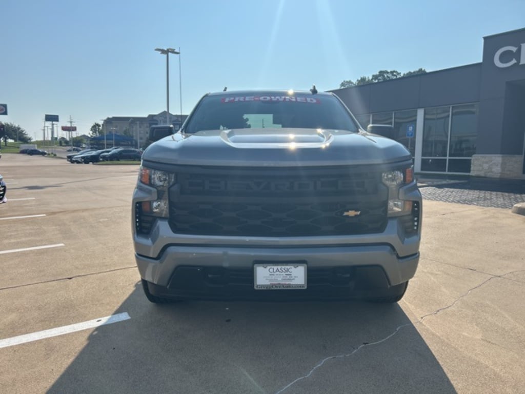 This 2023 Chevrolet Silverado 1500 comes equipped with the following features Custom Convenience Package (Electric Rear-Window Defogger, EZ Lift Power Lock & Release Tailgate, LED Cargo Area Lighting, Remote Vehicle Starter System, and Theft Deterrent System (Unauthorized Entry)), Custom Value Package, High Capacity Suspension Package, Preferred Equipment Group 1CX (10-Way Power Driver Seat w/Lumbar, 120-Volt Bed Mounted Power Outlet, 120-Volt Instrument Panel Power Outlet, 3.5" Monochromatic Display Driver Info Center, Bluetooth® For Phone, Chevrolet Connected Access Capable, Color-Keyed Carpeting Floor Covering, Compass, Deep-Tinted Glass, Dual Rear USB Ports (Charge Only), Electrical Steering Column Lock, Electronic Cruise Control, Front Frame-Mounted Black Recovery Hooks, Front Rubberized Vinyl Floor Mats, HD Rear Vision Camera, Manual Tilt Wheel Steering Column, OnStar & Chevrolet Connected Services Capable, Power Front Windows w/Driver Express Up/Down, Power Front Windows w/Passenger Express Down, Power Rear Windows w/Express Down, Rear 60/40 Folding Bench Seat (Folds Up), Rear Rubberized-Vinyl Floor Mats, Remote Keyless Entry, SiriusXM Radio, Standard Tailgate, Wi-Fi Hot Spot Capable, and Wireless Phone Projection), Trailering Package (Hitch Guidance), 8-Speed Automatic, 4WD, Jet Black w/Cloth Seat Trim, 3.42 Rear Axle Ratio, 4-Wheel Disc Brakes, 40/20/40 Front Split-Bench Seat, 6 Speakers, 6-Speaker Audio System, ABS brakes, Air Conditioning, All-Weather Floor Liner (LPO), Alloy wheels, AM/FM radio: SiriusXM, Apple CarPlay/Android Auto, Auto High-beam Headlights, Automatic Emergency Braking, Brake assist, Bumpers: body-color, Cloth Seat Trim, Delay-off headlights, Driver door bin, Driver vanity mirror, Dual front impact airbags, Dual front side impact airbags, Electronic Stability Control, Following Distance Indicator, Forward Collision Alert, Front anti-roll bar, Front Center Armrest w/Storage, Front License Plate Kit, Front Pedestrian Braking, Front reading lights, Front wheel independent suspension, Fully automatic headlights, Heated door mirrors, Illuminated entry, IntelliBeam Automatic High Beam On/Off, Lane Keep Assist w/Lane Departure Warning, Low tire pressure warning, Not Equipped w/Rear USB Ports, Not Equipped w/Steering Column Lock, Occupant sensing airbag, Outside temperature display, Overhead airbag, Overhead console, Panic alarm, Passenger door bin, Passenger vanity mirror, Power door mirrors, Power driver seat, Power steering, Power windows, Premium audio system: Chevrolet Infotainment 3, Radio data system, Radio: Chevrolet Infotainment 3 System, Rear reading lights, Rear step bumper, Rear window defroster, Remote keyless entry, Security system, Speed control, Speed-sensing steering, Split folding rear seat, Tachometer, Tilt steering wheel, Traction control, Trip computer, Variably intermittent wipers, Voltmeter, Wheels: 20" x 9" Bright Silver Painted Aluminum, and Wheels: 20" x 9" High Gloss Black Painted Alum. 8-Speed Automatic, 4WD, Jet Black w/Cloth Seat Trim. Clean CARFAX. CARFAX One-Owner. 2023 Chevrolet Silverado 1500 Custom 4WD 2.7L Turbo
