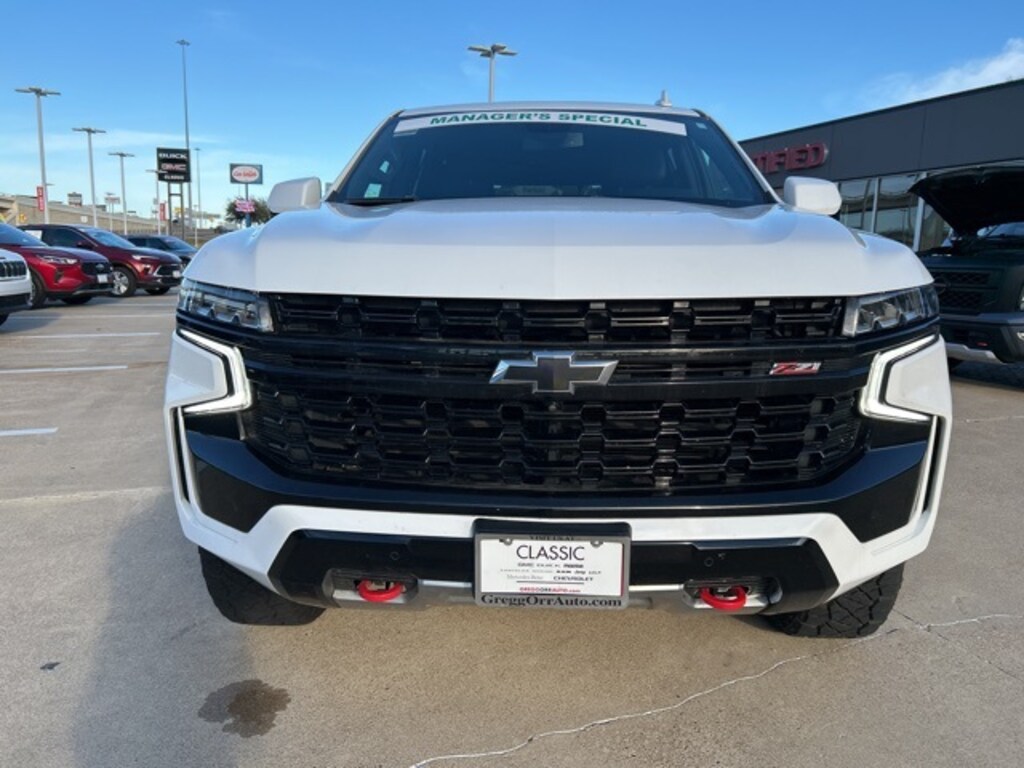 This 2023 Chevrolet Tahoe comes equipped with the following features Driver Alert Package (Lane Change Alert w/Side Blind Zone Alert and Rear Cross Traffic Alert), License Plate Front Mounting Package, Luxury Package (2nd Row Pwr Release 60/40 Split-Folding Bench Seat, 3rd Row 60/40 Power-Folding Split-Bench Seat, HD Surround Vision, Heated 2nd Row Outboard Seats, Heated Steering Wheel, Memory Settings, Outside Heated Power-Adjustable Mirrors, Power Tilt & Telescopic Steering Column, and Rear Pedestrian Alert), Preferred Equipment Group 2Z7 (1st & 2nd Row Color-Keyed Carpeted Floor Mats, 2-Speed Active Electronic AutoTrac Transfer Case, Auto-Dimming Inside Rear-View Mirror, Black Tubular Assist Steps, Bose 9-Speaker Stereo Audio System Feature, Bright Front & Rear Door Sill Plates, Color-Keyed Carpeting Floor Covering, Driver & Front Outboard Passenger Airbags, Enhanced Driver Information Center, Floor Console w/Storage Area, Front High-Approach Angle Fascia, Hands-Free Rear Power Programmable Liftgate, Hill Descent Control, Infotainment Display, LED Daytime Running Lamps, Memory Settings for Driver, Red Horizontal-Mounted Recovery Hooks, Remote Start, SiriusXM Radio w/360L, Universal Home Remote, Wireless Charging, and Wrapped Steering Wheel), 4WD, Jet Black w/Leather-Appointed Seat Trim, 10-Way Power Driver & Passenger Seat Adjusters, 3.23 Rear Axle Ratio, 3rd row seats: split-bench, 4-Wheel Disc Brakes, 9 Speakers, ABS brakes, Air Conditioning, Alloy wheels, AM/FM radio: SiriusXM with 360L, Apple CarPlay/Android Auto, Auto High-beam Headlights, Auto-dimming Rear-View mirror, Automatic temperature control, Brake assist, Bumpers: body-color, Compass, Delay-off headlights, Driver door bin, Driver vanity mirror, Dual front impact airbags, Dual front side impact airbags, Electronic Stability Control, Emergency communication system: OnStar and Chevrolet connected services capable, Four wheel independent suspension, Front anti-roll bar, Front Bucket Seats, Front Center Armrest, Front dual zone A/C, Front High-Back Reclining Bucket Seats, Front reading lights, Fully automatic headlights, Garage door transmitter, Heated door mirrors, Heated Driver & Front Passenger Seats, Heated front seats, Illuminated entry, Leather-Appointed Seat Trim, Low tire pressure warning, Memory seat, Navigation System, Occupant sensing airbag, Outside temperature display, Overhead airbag, Overhead console, Panic alarm, Passenger door bin, Passenger vanity mirror, Power door mirrors, Power driver seat, Power Liftgate, Power passenger seat, Power Release 2nd Row Bucket Seats, Power steering, Power windows, Premium audio system: Chevrolet Infotainment 3 Premium, Premium Smooth Ride Suspension, Radio: Chevrolet Infotainment 3 Premium System, Rain sensing wipers, Rear air conditioning, Rear anti-roll bar, Rear reading lights, Rear seat center armrest, Rear window defroster, Rear window wiper, Remote keyless entry, Roof rack: rails only, Security system, Speed control, Speed-sensing steering, Split folding rear seat, Spoiler, Steering wheel mounted audio controls, Tachometer, Telescoping steering wheel, Tilt steering wheel, Traction control, Trip computer, Variably intermittent wipers, Voltmeter, and Wheels: 20" x 9" Machined Aluminum. 4WD, Jet Black w/Leather-Appointed Seat Trim. Clean CARFAX. CARFAX One-Owner. 2023 Chevrolet Tahoe Z71 4WD EcoTec3 5.3L V8