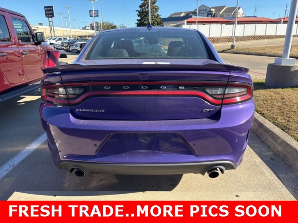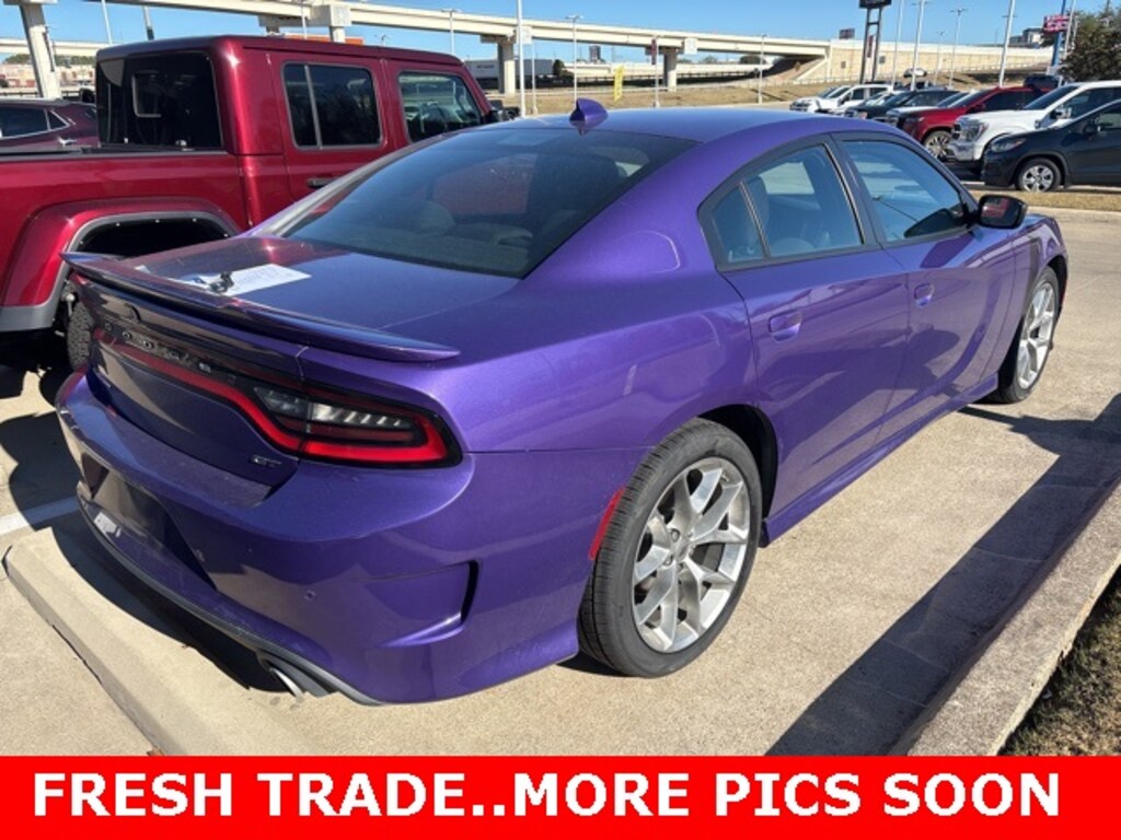 This 2023 Dodge Charger comes equipped with the following features Quick Order Package 2EH, Black w/Cloth Performance Seats or Cloth Performance Seats w/Heat or Daytona Logo Nappa/Alcantara Seat or Nappa/Alcantara Performance Seat, 1-Yr SiriusXM Guardian Trial, 2-Piece Shark Fin Antenna, 4-Wheel Disc Brakes, 4G LTE Wi-Fi Hot Spot, 6 Speakers, 8.4" Touchscreen Display, ABS brakes, Air Conditioning, Alloy wheels, AM/FM radio: SiriusXM, Anti-whiplash front head restraints, Apple CarPlay, Apple CarPlay/Android Auto, Auto-dimming Rear-View mirror, Automatic temperature control, Brake assist, Bumpers: body-color, Cloth Performance Seats, Compass, Delay-off headlights, Driver door bin, Driver vanity mirror, Dual front impact airbags, Dual front side impact airbags, Electronic Stability Control, Emergency communication system: SiriusXM Guardian, For Details, Visit DriveUconnect.com, Four wheel independent suspension, Front anti-roll bar, Front Bucket Seats, Front Center Armrest, Front dual zone A/C, Front License Plate Bracket, Front reading lights, Fully automatic headlights, Garage door transmitter: HomeLink, Google Android Auto, GPS Antenna Input, HD Radio, Heated door mirrors, Illuminated entry, Integrated Center Stack Radio, Integrated Voice Command w/Bluetooth, Knee airbag, Leather Shift Knob, Low tire pressure warning, Manufacturer's Statement of Origin, Media Hub (2 USB, AUX), Occupant sensing airbag, Outside temperature display, Overhead airbag, Overhead console, Panic alarm, ParkView Rear Back-Up Camera, Passenger door bin, Passenger vanity mirror, Power 2-Way Driver Lumbar Adjust, Power 8-Way Driver Seat, Power door mirrors, Power driver seat, Power steering, Power windows, Radio: Uconnect 4C w/8.4" Display, Rear anti-roll bar, Rear Armrest w/Cupholder Seat, Rear reading lights, Rear seat center armrest, Rear window defroster, Remote keyless entry, Speed control, Speed-Sensitive Wipers, Split folding rear seat, Spoiler, Steering wheel mounted audio controls, Tachometer, Telescoping steering wheel, Tilt steering wheel, Traction control, Trip computer, USB Host Flip, Variably intermittent wipers, and Wheels: 20" x 8" Satin Carbon PainteD. Black w/Cloth Performance Seats or Cloth Performance Seats w/Heat or Daytona Logo Nappa/Alcantara Seat or Nappa/Alcantara Performance Seat. CARFAX One-Owner. 2023 Dodge Charger GT RWD 3.6L V6 24V VVT