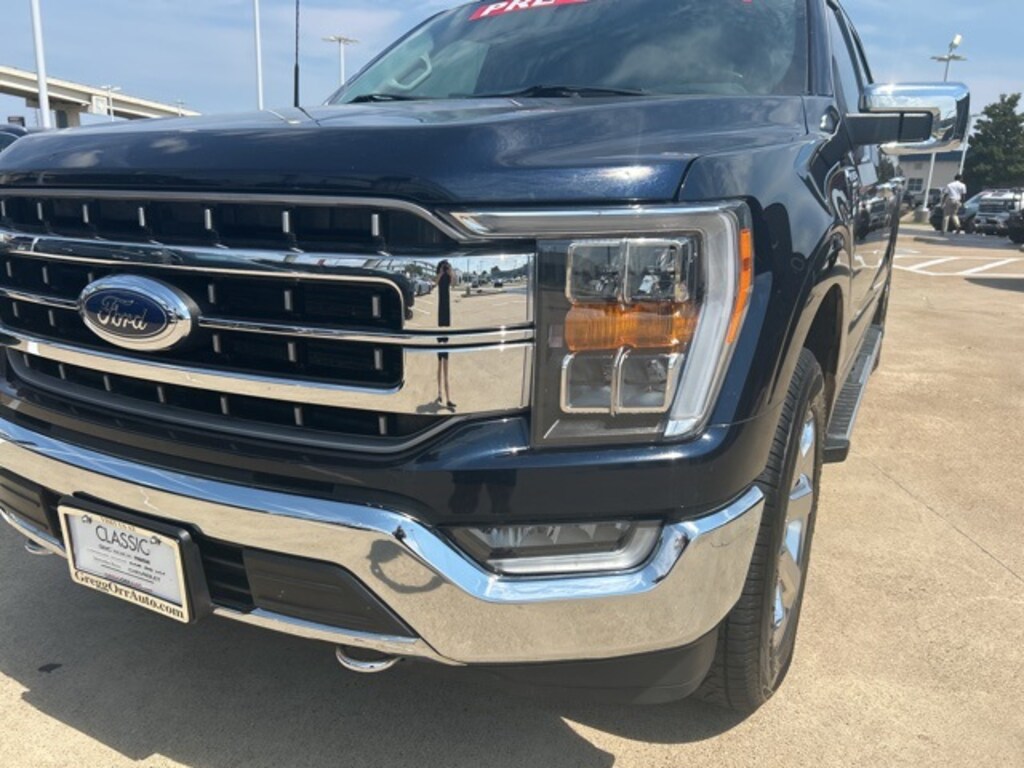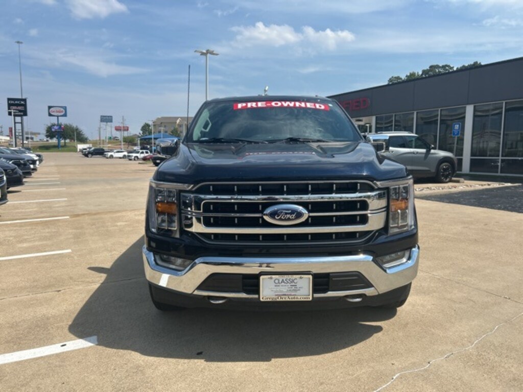 This 2022 Ford F-150 comes equipped with the following features Equipment Group 501A Mid (Onboard 400W Outlet, Radio: B&O Sound System by Bang & Olufsen, and Universal Garage Door Opener), FX4 Off-Road Package (Tray Style Floor Liner (47W)), Lariat Chrome Appearance Package (6" Bright Polished Running Board, Chrome 2-Bar Grille w/4 Minor Bars, Chrome Door & Tailgate Handles w/Body-Color Bezel, Chrome Single-Tip Exhaust, Chrome Skull Caps on Exterior Mirrors, and Wheels: 18" Chrome-Like PVD), Max Trailer Tow Package (Class IV Trailer Hitch Receiver, Extended Range 36 Gallon Fuel Tank, Integrated Trailer Brake Controller, and Pro Trailer Backup Assist), 4WD, 18" Machined-Aluminum Wheels, 3.31 Axle Ratio, 4-Wheel Disc Brakes, 7 Speakers, ABS brakes, Adjustable pedals, Air Conditioning, Alloy wheels, AM/FM radio: SiriusXM with 360L, Auto High-beam Headlights, Auto Start-Stop Removal, Auto-dimming door mirrors, Auto-dimming Rear-View mirror, Automatic temperature control, Brake assist, Bumpers: chrome, Compass, Connected Navigation & SiriusXM w/360L Removal, Delay-off headlights, Driver door bin, Driver vanity mirror, Dual front impact airbags, Dual front side impact airbags, Electronic Locking w/3.73 Axle Ratio, Electronic Stability Control, Emergency communication system: SYNC 4 911 Assist, Exterior Parking Camera Rear, Front anti-roll bar, Front Center Armrest w/Storage, Front dual zone A/C, Front fog lights, Front reading lights, Front wheel independent suspension, Fully automatic headlights, Heated door mirrors, Heated front seats, Illuminated entry, Leather-Trimmed 40/20/40 Front Seat, LED Sideview Mirror Spotlights, Low tire pressure warning, Memory seat, Occupant sensing airbag, Outside temperature display, Overhead airbag, Overhead console, Panic alarm, Passenger door bin, Passenger vanity mirror, Pedal memory, Power door mirrors, Power driver seat, Power passenger seat, Power steering, Power windows, Radio data system, Radio: AM/FM SiriusXM w/360L, Rear reading lights, Rear seat center armrest, Rear step bumper, Rear window defroster, Remote keyless entry, Security system, Speed control, Speed-sensing steering, Split folding rear seat, Steering wheel mounted audio controls, SYNC 4 w/Enhanced Voice Recognition, Tachometer, Telescoping steering wheel, Tilt steering wheel, Traction control, Trip computer, Turn signal indicator mirrors, Variably intermittent wipers, Ventilated front seats, Voltmeter, and Wheels: 20" Chrome-Like PVD. 4WD. 2022 Ford F-150 Lariat 4WD 5.0L V8