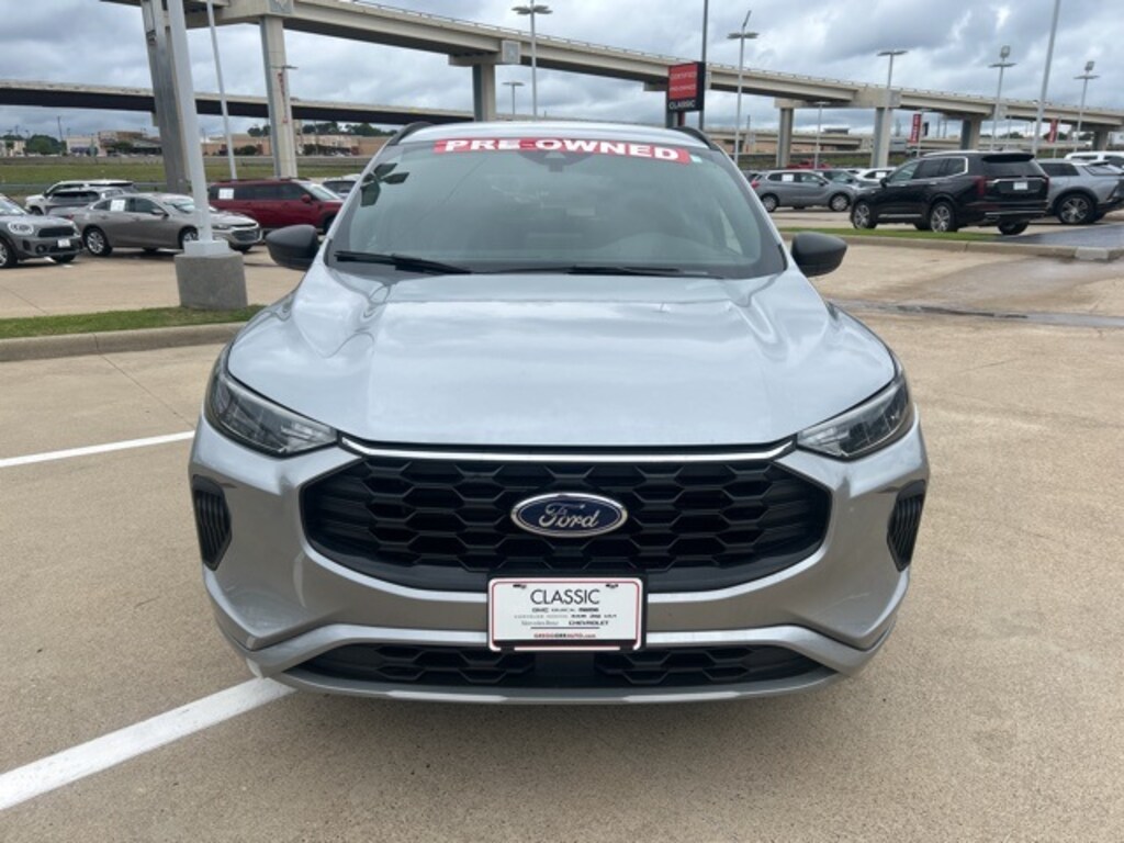 This 2024 Ford Escape comes equipped with the following features Equipment Group 300A, 3.81 Axle Ratio, 4-Wheel Disc Brakes, 6 Speakers, ABS brakes, Air Conditioning, Alloy wheels, AM/FM radio: SiriusXM, AM/FM Stereo, Auto High-beam Headlights, Automatic temperature control, Brake assist, Bumpers: body-color, Compass, Delay-off headlights, Driver door bin, Driver vanity mirror, Dual front impact airbags, Dual front side impact airbags, Electronic Stability Control, Emergency communication system: SYNC 4 911 Assist, Exterior Parking Camera Rear, FordPass Connect, Four wheel independent suspension, Front anti-roll bar, Front Bucket Seats, Front Center Armrest, Front dual zone A/C, Front License Plate Bracket, Front reading lights, Fully automatic headlights, Illuminated entry, Knee airbag, Low tire pressure warning, Occupant sensing airbag, Outside temperature display, Overhead airbag, Overhead console, Panic alarm, Passenger door bin, Passenger vanity mirror, Power door mirrors, Power driver seat, Power Liftgate, Power steering, Power windows, Radio data system, Rear anti-roll bar, Rear reading lights, Rear seat center armrest, Rear window defroster, Rear window wiper, Remote keyless entry, Roof rack: rails only, Speed control, Speed-sensing steering, Speed-Sensitive Wipers, Split folding rear seat, Spoiler, Sport steering wheel, Steering wheel mounted audio controls, SYNC 4, Tachometer, Telescoping steering wheel, Tilt steering wheel, Traction control, Trip computer, Variably intermittent wipers, Vinyl/Cloth Front Sport Contour Bucket Seats, and Wheels: 18" Rock Metallic Painted Aluminum. Clean CARFAX. CARFAX One-Owner. Priced below KBB Fair Purchase Price! 2024 Ford Escape ST-Line FWD 1.5L EcoBoost