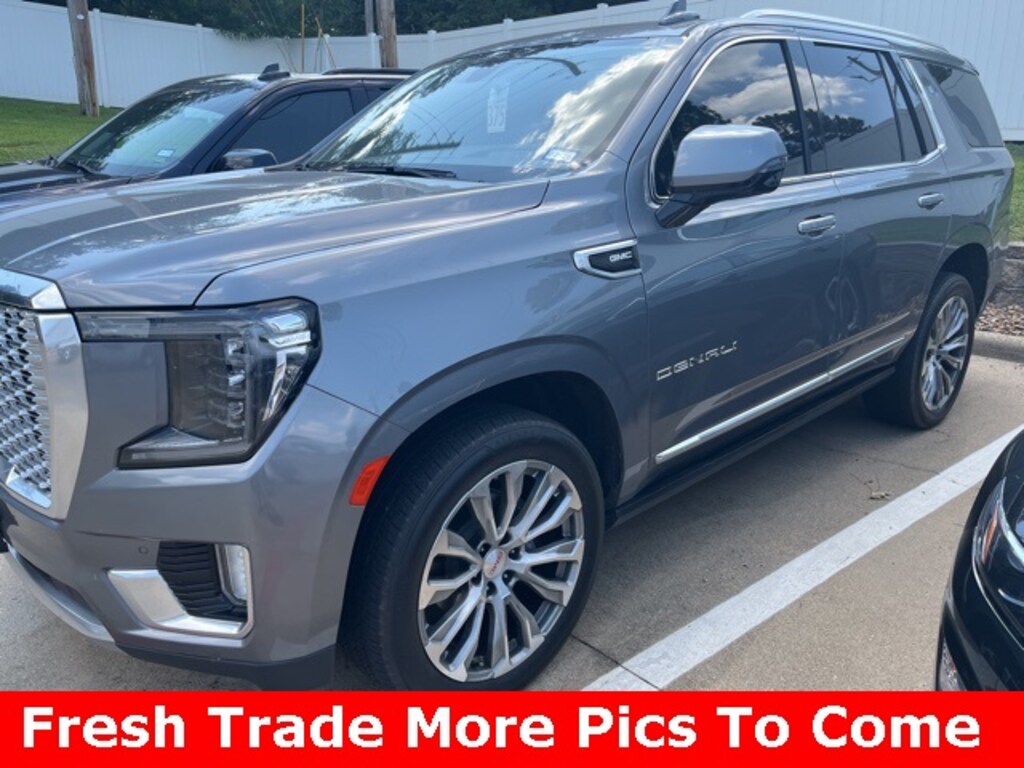 This 2021 GMC Yukon comes equipped with the following features Advanced Security Package (Glass Breakage Sensor, Theft-Deterrent Alarm System, Vehicle Inclination Sensor, and Vehicle Interior Movement Sensor), Advanced Technology Package (Adaptive Cruise Control, Enhanced Automatic Emergency Braking, Inside Rearview Auto-Dimming Rear Camera Mirror, and Rear Camera Mirror Washer), Denali Premium Package (Dual-Pane Panoramic Power Sunroof and Power-Retractable Assist Steps), License Plate Front Mounting Package, Preferred Equipment Group 5SA (12-Way Power Seat Adjusters, 15" Diagonal Multi-Color Head-Up Display, 2 Presets For Outside Rearview Mirrors, 3rd Row 60/40 Power-Folding Split-Bench Seat, Bright Front & Rear Door Sill Plates, Chrome Door Handles w/Body-Color Strip, Dual Exhaust System, Galvano Bodyside Moldings, Hands-Free Power Programmable Rear Liftgate, HD Surround Vision, Heated & Ventilated Driver & Front Passenger Seats, Heated 2nd Row Outboard Position Seats, Heated Automatic Steering Wheel, Heated Driver & Front Passenger Seats, Inside Rear-View Auto-Dimming Mirror, Outside Heated Power-Adjustable Mirrors, Power Release 2nd Row Bucket Seats, Power Tilt & Telescopic Steering Column, Rear Pedestrian Alert, Safety Alert Seat, and Universal Home Remote), 14 Speakers, 3.23 Rear Axle Ratio, 3rd row seats: split-bench, 4-Wheel Disc Brakes, ABS brakes, Adaptive suspension, Air Conditioning, Alloy wheels, AM/FM radio: SiriusXM with 360L, Apple CarPlay/Android Auto, Auto High-beam Headlights, Auto-dimming door mirrors, Auto-dimming Rear-View mirror, Auto-leveling suspension, Automatic Emergency Braking, Automatic temperature control, Bodyside moldings, Bose 14-Speaker Surround w/CenterPoint, Brake assist, Bumpers: body-color, Compass, Delay-off headlights, Driver door bin, Driver vanity mirror, Dual front impact airbags, Dual front side impact airbags, Electronic Stability Control, Emergency communication system: OnStar and GMC connected services capable, Floor Console, Following Distance Indicator, Forward Collision Alert, Four wheel independent suspension, Front & Rear Park Assist, Front anti-roll bar, Front Bucket Seats, Front Center Armrest, Front dual zone A/C, Front fog lights, Front Pedestrian Braking, Front reading lights, Fully automatic headlights, Garage door transmitter, HD Radio, Heads-Up Display, Heated door mirrors, Heated front seats, Heated rear seats, Heated steering wheel, Illuminated entry, IntelliBeam Automatic High Beam On/Off, Jet Black Interior Trim, Lane Change Alert w/Side Blind Zone Alert, Lane Keep Assist w/Lane Departure Warning, Leather steering wheel, Low tire pressure warning, Magnetic Ride Control Suspension, Memory seat, Navigation System, Occupant sensing airbag, Outside temperature display, Overhead airbag, Overhead console, Panic alarm, Passenger door bin, Passenger vanity mirror, Perforated Leather Seating Surfaces, Power door mirrors, Power driver seat, Power Liftgate, Power passenger seat, Power steering, Power windows, Radio: AM/FM/SiriusXM w/Navigation, Rain sensing wipers, Rear air conditioning, Rear anti-roll bar, Rear Cross Traffic Alert, Rear reading lights, Rear window defroster, Rear window wiper, Remote keyless entry, Roof rack: rails only, Security system, SiriusXM w/360L, Speed control, Speed-sensing steering, Split folding rear seat, Spoiler, Steering wheel memory, Steering wheel mounted audio controls, Tachometer, Telescoping steering wheel, Tilt steering wheel, Traction control, Trip computer, Turn signal indicator mirrors, Variably intermittent wipers, Ventilated front seats, Voltmeter, Wheel Locks, Wheels: 20" x 9" 6-Spoke Polished Aluminum, and Wheels: 22" x 9" Bright Machined Aluminum. 2021 GMC Yukon Denali RWD EcoTec3 6.2L V8