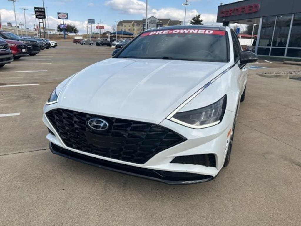 This 2022 Hyundai Sonata comes equipped with the following features Option Group 01, Black w/Leather Seating Surfaces, 12 Speakers, 19" x 8.0J Aluminum Alloy Wheels, 4-Wheel Disc Brakes, ABS brakes, Air Conditioning, Alloy wheels, AM/FM radio: SiriusXM, Apple CarPlay & Android Auto, Auto High-beam Headlights, Auto-dimming Rear-View mirror, Automatic temperature control, Brake assist, Bumpers: body-color, Carpeted Floor Mats, Delay-off headlights, Driver door bin, Driver vanity mirror, Dual front impact airbags, Dual front side impact airbags, Electronic Stability Control, Emergency communication system: Blue Link Connected Car Service (3-year complimentary subscription), Exterior Parking Camera Rear, Four wheel independent suspension, Front anti-roll bar, Front Bucket Seats, Front Center Armrest, Front dual zone A/C, Front reading lights, Fully automatic headlights, Heated door mirrors, Heated Front Bucket Seats, Heated front seats, Illuminated entry, Knee airbag, Leather steering wheel, Leatherette Seating Surfaces, Low tire pressure warning, Mud Guards, Navigation System, Occupant sensing airbag, Outside temperature display, Overhead airbag, Overhead console, Panic alarm, Passenger door bin, Passenger vanity mirror, Power door mirrors, Power driver seat, Power moonroof, Power steering, Power windows, Radio data system, Radio: AM/FM/MP3/HD/SiriusXM Display Audio w/Nav, Rear anti-roll bar, Rear seat center armrest, Rear side impact airbag, Rear window defroster, Remote keyless entry, Reversible Cargo Tray, Security system, Speed control, Speed-sensing steering, Speed-Sensitive Wipers, Split folding rear seat, Steering wheel mounted audio controls, Tachometer, Telescoping steering wheel, Tilt steering wheel, Traction control, Trip computer, Turn signal indicator mirrors, and Variably intermittent wipers. Black w/Leather Seating Surfaces. 2022 Hyundai Sonata SEL Plus FWD I4