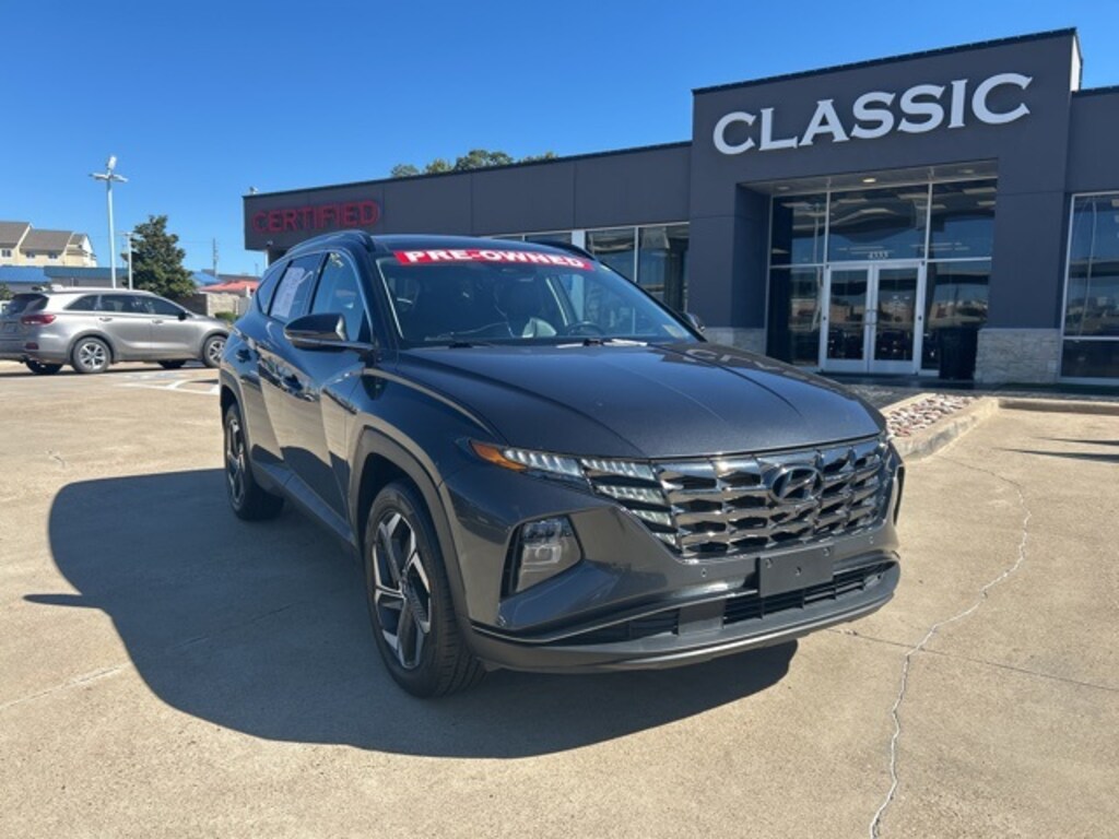 This 2023 Hyundai Tucson comes equipped with the following features Option Group 01, AWD, 3.648 Axle Ratio, 4-Wheel Disc Brakes, 8 Speakers, ABS brakes, Air Conditioning, Alloy wheels, AM/FM radio: SiriusXM, Apple CarPlay & Android Auto, Auto High-beam Headlights, Auto-dimming Rear-View mirror, Automatic temperature control, Brake assist, Bumpers: body-color, Delay-off headlights, Driver door bin, Driver vanity mirror, Dual front impact airbags, Dual front side impact airbags, Electronic Stability Control, Emergency communication system: Blue Link Connected Car Service (3-year complimentary subscription), Four wheel independent suspension, Front anti-roll bar, Front Bucket Seats, Front Center Armrest, Front dual zone A/C, Front reading lights, Fully automatic headlights, Garage door transmitter: HomeLink, Heated & Ventilated Front Bucket Seats, Heated door mirrors, Heated front seats, Heated rear seats, Heated steering wheel, Illuminated entry, Leather Seat Trim, Low tire pressure warning, Memory seat, Navigation System, Occupant sensing airbag, Outside temperature display, Overhead airbag, Overhead console, Panic alarm, Passenger door bin, Passenger vanity mirror, Power door mirrors, Power driver seat, Power Liftgate, Power moonroof, Power passenger seat, Power steering, Power windows, Radio data system, Radio: Bose Premium w/AM/FM/HD/SiriusXM Audio System, Rain sensing wipers, Rear anti-roll bar, Rear reading lights, Rear seat center armrest, Rear window defroster, Rear window wiper, Remote keyless entry, Roof rack: rails only, Security system, Speed control, Split folding rear seat, Spoiler, Steering wheel mounted audio controls, Tachometer, Telescoping steering wheel, Tilt steering wheel, Traction control, Trip computer, Turn signal indicator mirrors, Variably intermittent wipers, Ventilated front seats, and Wheels: 19" x 7.5J" Machine-Face Finish Alloy. AWD. CARFAX One-Owner. 2023 Hyundai Tucson Limited AWD 2.5L I4 DGI DOHC 16V LEV3-ULEV70 187hp