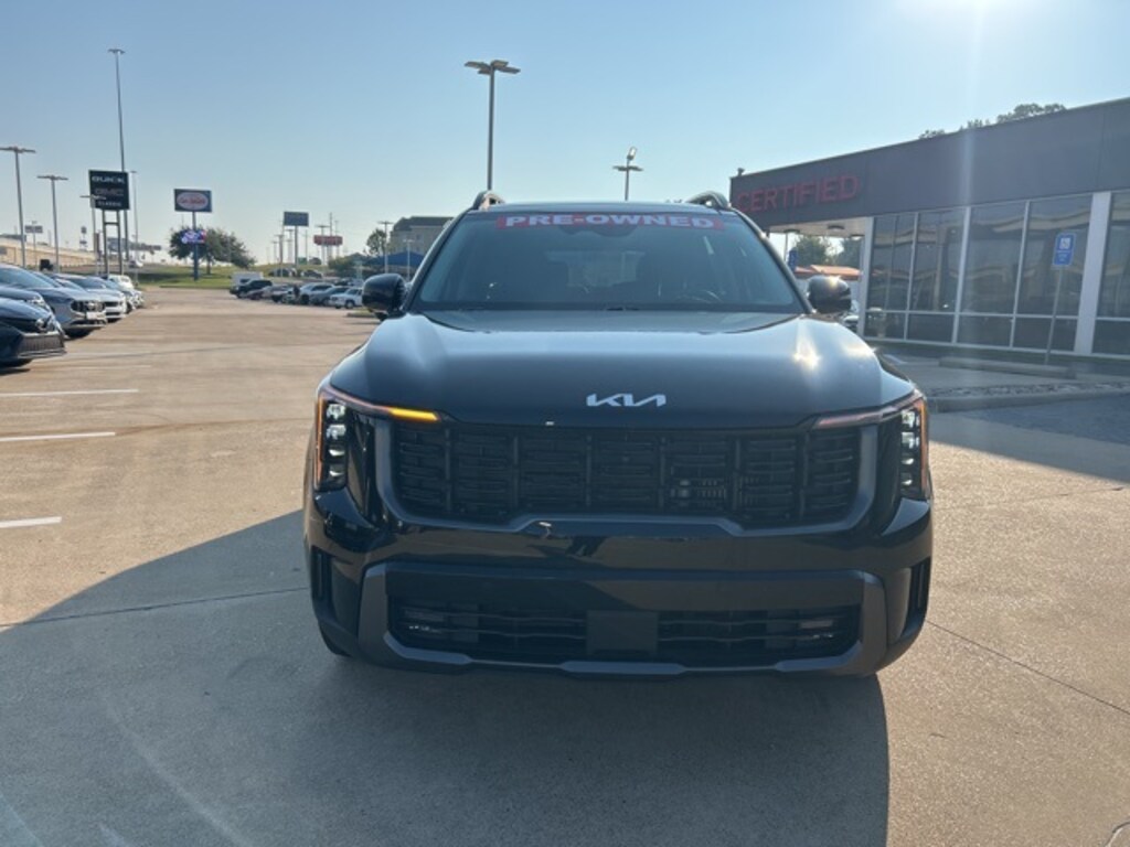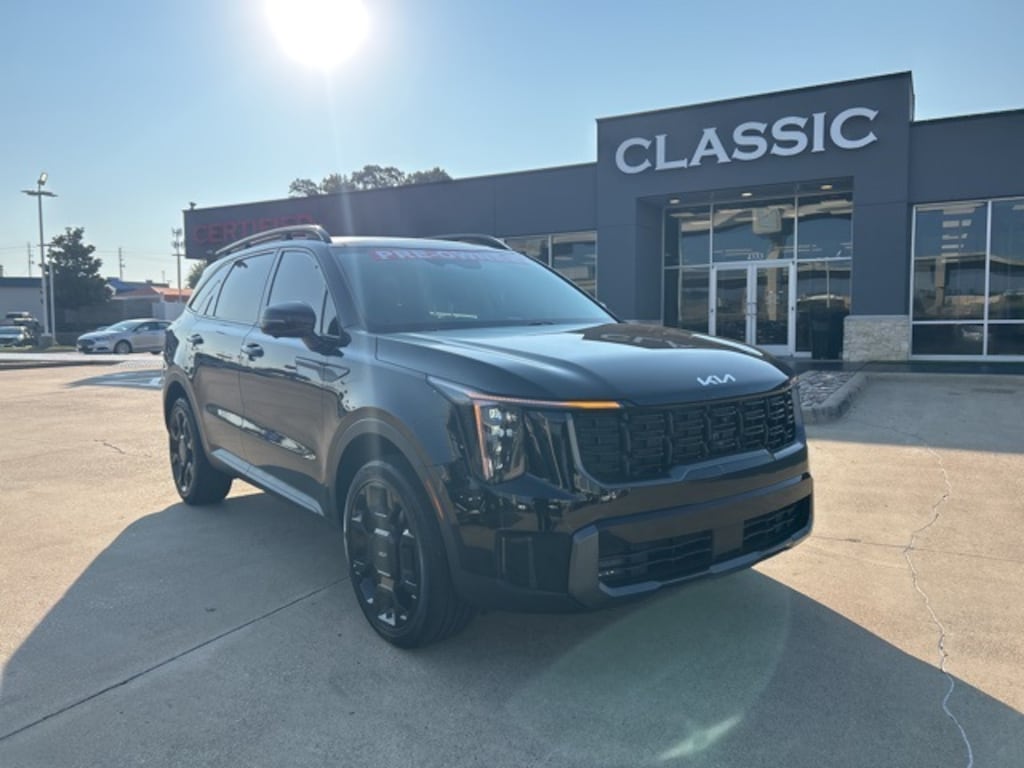 This 2024 Kia Sorento comes equipped with the following features AWD, 3.316 Axle Ratio, 3rd row seats: split-bench, 4-Wheel Disc Brakes, 6 Speakers, ABS brakes, Air Conditioning, Alloy wheels, AM/FM radio: SiriusXM, Apple CarPlay & Android Auto, Auto High-beam Headlights, Auto-dimming Rear-View mirror, Automatic temperature control, Brake assist, Bumpers: body-color, Carpeted Floor Mats, Delay-off headlights, Driver door bin, Driver vanity mirror, Dual front impact airbags, Dual front side impact airbags, Electronic Stability Control, Emergency communication system: 911 Connect, Exterior Parking Camera Rear, Four wheel independent suspension, Front anti-roll bar, Front Bucket Seats, Front Center Armrest, Front dual zone A/C, Front fog lights, Front reading lights, Fully automatic headlights, Heated & Ventilated Front Bucket Seats, Heated door mirrors, Heated front seats, Illuminated entry, Knee airbag, Leather steering wheel, Low tire pressure warning, Navigation System, Occupant sensing airbag, Outside temperature display, Overhead airbag, Overhead console, Panic alarm, Passenger door bin, Passenger vanity mirror, Power door mirrors, Power driver seat, Power Liftgate, Power moonroof, Power passenger seat, Power steering, Power windows, Radio data system, Radio: AM/FM Audio System, Rain sensing wipers, Rear anti-roll bar, Rear reading lights, Rear side impact airbag, Rear window defroster, Rear window wiper, Remote keyless entry, Security system, Smart Key w/ Push Button and Remote Start, Speed control, Speed-sensing steering, Split folding rear seat, Spoiler, Steering wheel mounted audio controls, SynTex Artificial Leather Seat Trim, Tachometer, Telescoping steering wheel, Tilt steering wheel, Traction control, Trip computer, Turn signal indicator mirrors, Variably intermittent wipers, Ventilated front seats, and Wheels: 8.5J x 20" Gloss Black X-Line Alloy. AWD. Clean CARFAX. CARFAX One-Owner. 2024 Kia Sorento X-Line SX AWD 2.5L I4 DGI Turbocharged DOHC 16V LEV3-SULEV30 281hp