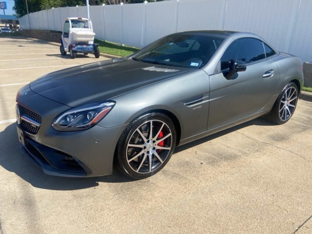 This 2020 Mercedes-Benz SLC comes equipped with the following features 10 Speakers, 4-Way Lumbar Support, 4-Wheel Disc Brakes, ABS brakes, Air Conditioning, Alloy wheels, AM/FM radio: SiriusXM, Anti-whiplash front head restraints, Auto High-beam Headlights, Auto tilt-away steering wheel, Auto-dimming door mirrors, Auto-dimming Rear-View mirror, Automatic temperature control, Brake assist, Bumpers: body-color, CD player, Child-Seat-Sensing Airbag, Compass, Convertible HardTop, Convertible roof lining, Convertible roof wind blocker, Delay-off headlights, Driver door bin, Driver vanity mirror, Dual front impact airbags, Dual front side impact airbags, Electronic Stability Control, Emergency communication system: Mercedes me connect, Exterior Parking Camera Rear, Four wheel independent suspension, Front anti-roll bar, Front Bucket Seats, Front Center Armrest, Front dual zone A/C, Front reading lights, Fully automatic headlights, Garage door transmitter: Homelink, Glass rear window, harman/kardon® Logic 7® Surround Sound System, harman/kardon® Speakers, Heated door mirrors, Heated front seats, Illuminated entry, Integrated roll-over protection, Knee airbag, Leather Shift Knob, Low tire pressure warning, Memory seat, Nappa/DINAMICA Leather Upholstery, Occupant sensing airbag, Outside temperature display, Overhead airbag, Overhead console, Panic alarm, Passenger door bin, Passenger vanity mirror, Power convertible roof, Power door mirrors, Power driver seat, Power Front Heated Seats w/Memory, Power passenger seat, Power steering, Power windows, Radio data system, Radio: Audio 20, Rain sensing wipers, Rear anti-roll bar, Rear fog lights, Rear window defroster, Remote keyless entry, Security system, SiriusXM Radio, Speed control, Speed-sensing steering, Spoiler, Sport steering wheel, Steering wheel memory, Steering wheel mounted audio controls, Tachometer, Telescoping steering wheel, Tilt steering wheel, Traction control, Trip computer, Turn signal indicator mirrors, Variably intermittent wipers, Weather band radio, and Wheels: 18" AMG® Multi-Spoke w/Black Accents. Clean CARFAX. 2020 Mercedes-Benz SLC 43 AMG® Base RWD V6