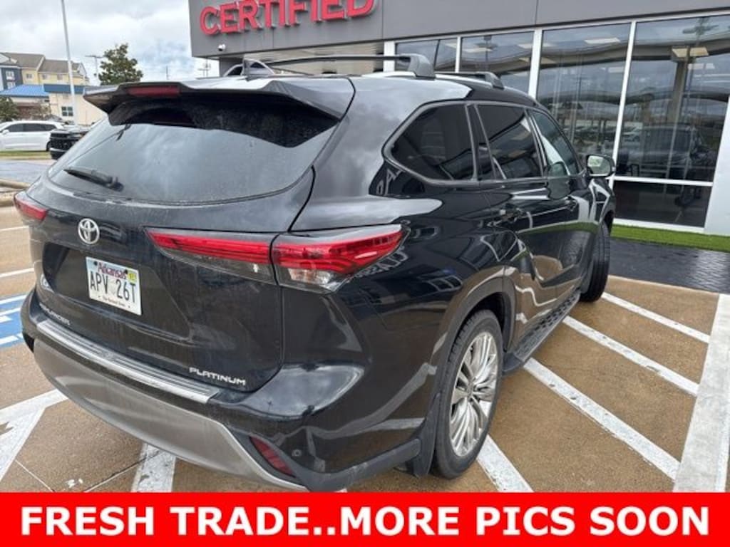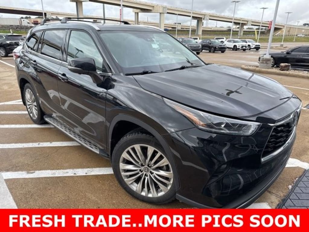 This 2023 Toyota Highlander comes equipped with the following features Platinum Package (Digital Rearview Mirror w/HomeLink, High Grade LED Projector Headlights, Panoramic Moonroof, and Panoramic View Monitor), 11 Speakers, 20" Painted Alloy Wheels, 3.329 Axle Ratio, 3rd row seats: split-bench, 4-Wheel Disc Brakes, ABS brakes, Air Conditioning, Alloy wheels, AM/FM radio: SiriusXM, Apple CarPlay/Android Auto, Auto High-beam Headlights, Auto-dimming Rear-View mirror, Automatic temperature control, Brake assist, Bumpers: body-color, Delay-off headlights, Digital Rearview Mirror, Driver door bin, Driver vanity mirror, Dual front impact airbags, Dual front side impact airbags, Electronic Inner Mirror, Electronic Stability Control, Emergency communication system: Safety Connect (up to 10-year trial subscription), Four wheel independent suspension, Front anti-roll bar, Front Bucket Seats, Front Center Armrest, Front dual zone A/C, Front fog lights, Front reading lights, Fully automatic headlights, Garage door transmitter: HomeLink, Heads-Up Display, Heated door mirrors, Heated front seats, Heated rear seats, Heated steering wheel, Heated/Ventilated Front Bucket Seats, Illuminated entry, Knee airbag, Leather Seat Trim, Leather Shift Knob, Leather steering wheel, Low tire pressure warning, Memory seat, Navigation system: Drive Connect Cloud Navigation (1-year trial subscription), Occupant sensing airbag, Outside temperature display, Overhead airbag, Overhead console, Panic alarm, Passenger door bin, Passenger vanity mirror, Power door mirrors, Power driver seat, Power Liftgate, Power moonroof, Power passenger seat, Power steering, Power windows, Radio: 12.3" Toyota Audio Multimedia w/JBL Premium, Rain sensing wipers, Rear air conditioning, Rear anti-roll bar, Rear reading lights, Rear window defroster, Rear window wiper, Reclining 3rd row seat, Remote keyless entry, Roof rack: rails only, Security system, Speed control, Speed-sensing steering, Split folding rear seat, Spoiler, Steering wheel mounted audio controls, Tachometer, Telescoping steering wheel, Tilt steering wheel, Traction control, Trip computer, Turn signal indicator mirrors, Variably intermittent wipers, and Ventilated front seats. CARFAX One-Owner. 2023 Toyota Highlander Platinum FWD 2.4L I4 PDI Turbocharged DOHC 16V LEV3-SULEV30 265hp